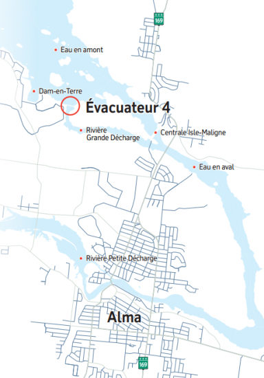 Cet hiver, il est possible que Rio Tinto procède à des déversements en continu à partir de l’évacuateur 4, alors qu’il est habituellement inutilisé durant cette période. Celui-ci est situé sur la rivière Grande Décharge, entre le Centre de villégiature Dam-en-Terre et la Centrale Isle-Maligne.