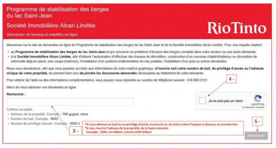 Un outil de requêtes en ligne a été développé afin d’accélérer le processus de traitement de votre demande, que ce soit pour signaler une problématique d’érosion ou pour faire une modification à votre terrain sous bail avec la Société Immobilière Alcan Limitée (SIAL).